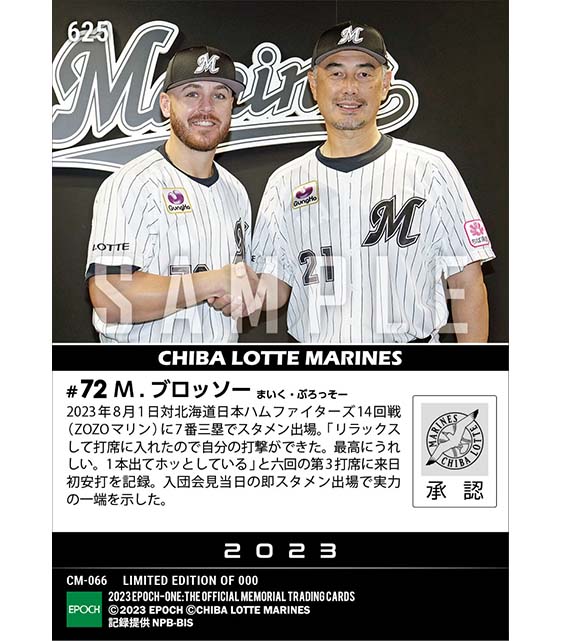 公式【ブロッソー】来日初安打(23.8.1) のカードを買うならエポックワン!税込・送料無料!