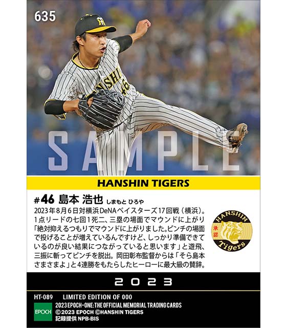 公式【島本浩也】絶体絶命のピンチを救う好リリーフ(23.8.6) のカードを買うならエポックワン!税込・送料無料!
