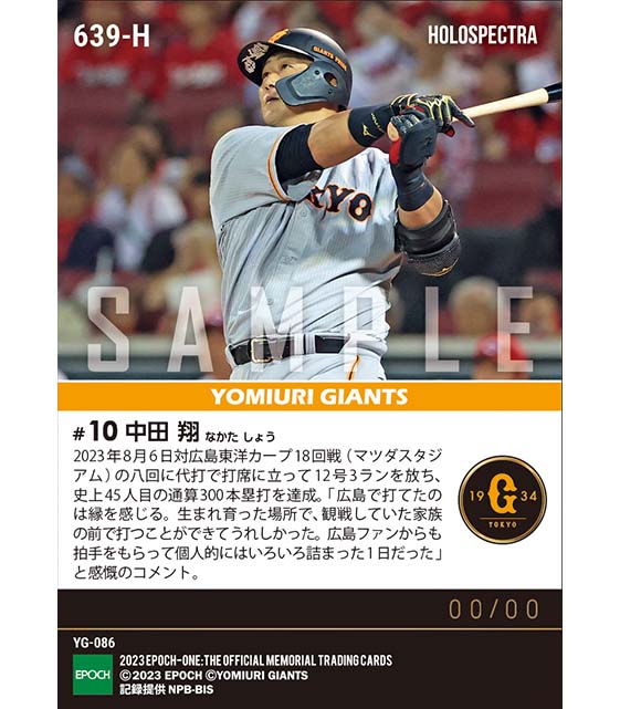 公式※ホロスペクトラ【中田 翔】地元・広島で通算300本塁打達成(23.8.6) のカードを買うならエポックワン!税込・送料無料!