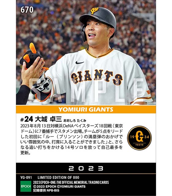 公式【大城卓三】自己最多を更新する14号ソロ(23.8.13) のカードを買うならエポックワン!税込・送料無料!