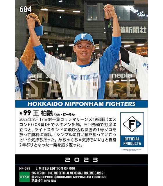 公式【王 柏融】2年ぶりの一発となる決勝弾(23.8.17) のカードを買うならエポックワン!税込・送料無料!