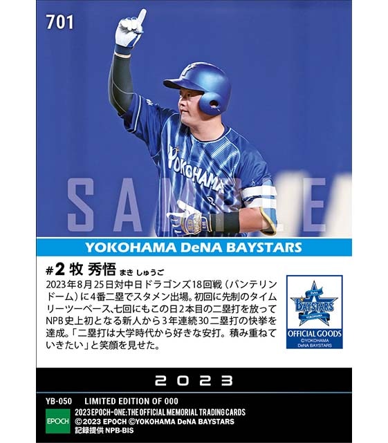 公式【牧 秀悟】NPB史上初新人から3年連続30二塁打達成(23.8.25) のカードを買うならエポックワン!税込・送料無料!