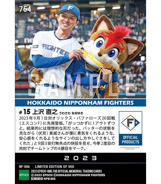 公式【上沢直之】今季2度目の完封でチームトップ8勝目(23.9.1) のカードを買うならエポックワン!税込・送料無料!
