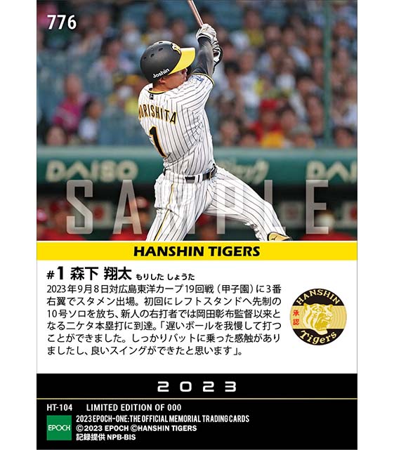 公式RC【森下翔太】球団新人右打者43年ぶり二ケタ本塁打到達(23.9.8) のカードを買うならエポックワン!税込・送料無料!