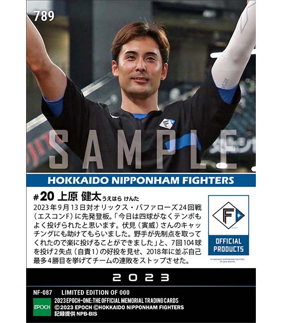 公式【上原健太】自己最多4勝目でチームの連敗をストップ(23.9.13) のカードを買うならエポックワン!税込・送料無料!