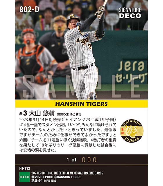 公式※Signature DECO【大山悠輔】18年ぶりのアレを呼び込む決勝犠飛(2023シーズンリーグ優勝決定試合)(23.9.14) のカードを買うならエポックワン!税込・送料無料!