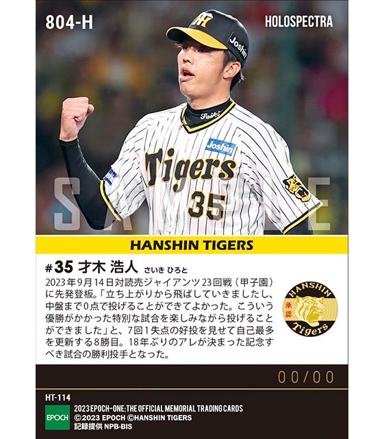 公式※ホロスペクトラ【才木浩人】大役に応える気合の投球で勝利投手(2023シーズンリーグ優勝決定試合)(23.9.14) のカードを買うならエポックワン!税込・送料無料!