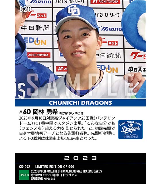 公式【岡林勇希】自身初の初回先頭打者弾(23.9.16) のカードを買うならエポックワン!税込・送料無料!