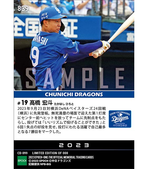 公式【髙橋宏斗】先制打&自己最多7勝目(23.9.23) のカードを買うならエポックワン!税込・送料無料!