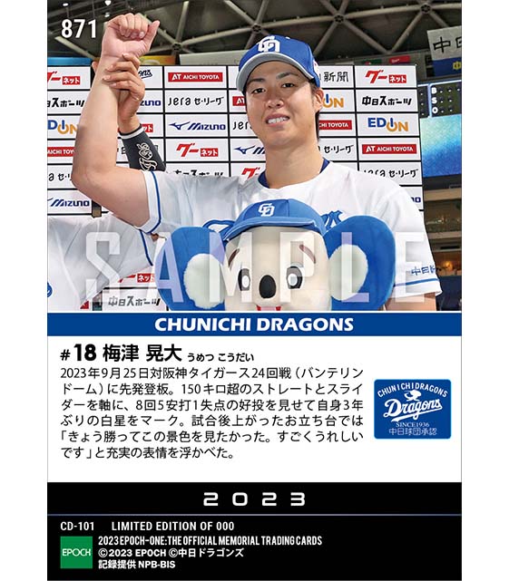 公式【梅津晃大】1177日ぶりの勝利投手(23.9.25) のカードを買うならエポックワン!税込・送料無料!