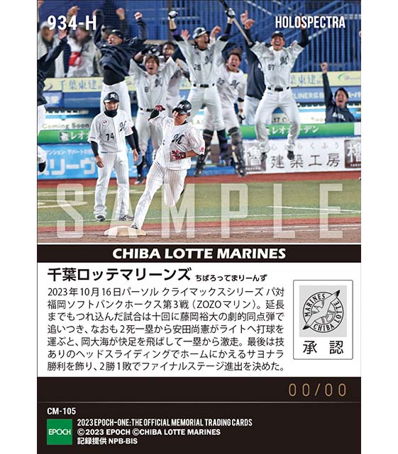 公式※ホロスペクトラ【千葉ロッテマリーンズ】CSファイナルステージ進出決定!「2023 パーソル クライマックスシリーズ パ」(23.10.16) のカードを買うならエポックワン!税込・送料無料!