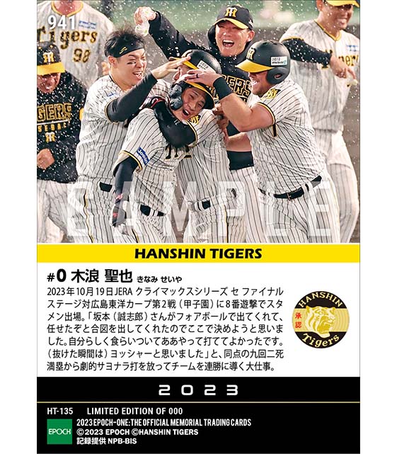 公式【木浪聖也】日本シリーズ進出に王手をかける劇的サヨナラ打「2023 JERA クライマックスシリーズ セ」(23.10.19) のカードを買うならエポックワン!税込・送料無料!