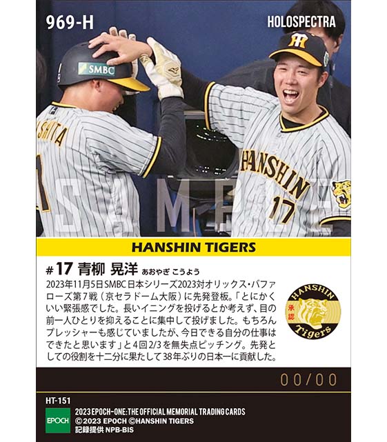公式※ホロスペクトラ【青柳晃洋】緊迫のマウンドで五回途中無失点の好投「SMBC日本シリーズ2023」(23.11.5) のカードを買うならエポックワン!税込・送料無料!