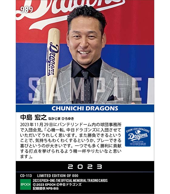 公式【中島宏之】入団会見「勝利に貢献する打点を挙げられるよう精一杯やりたい」(23.11.29) のカードを買うならエポックワン!税込・送料無料!
