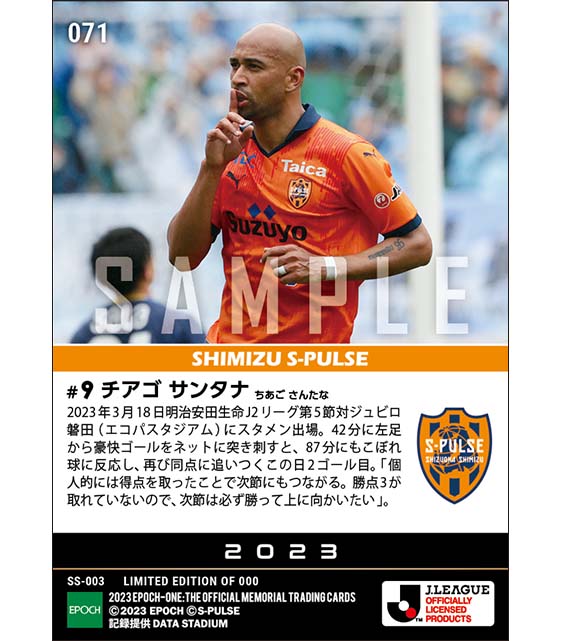 公式【チアゴ サンタナ】静岡ダービーで今季初ゴールからの豪快2発(23.3.18) のカードを買うならエポックワン!税込・送料無料!