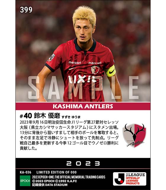 公式【鈴木優磨】先制決勝弾でチームはウノゼロ勝利(自己最多を更新する今季12ゴール目)(23.9.16) のカードを買うならエポックワン!税込・送料無料!
