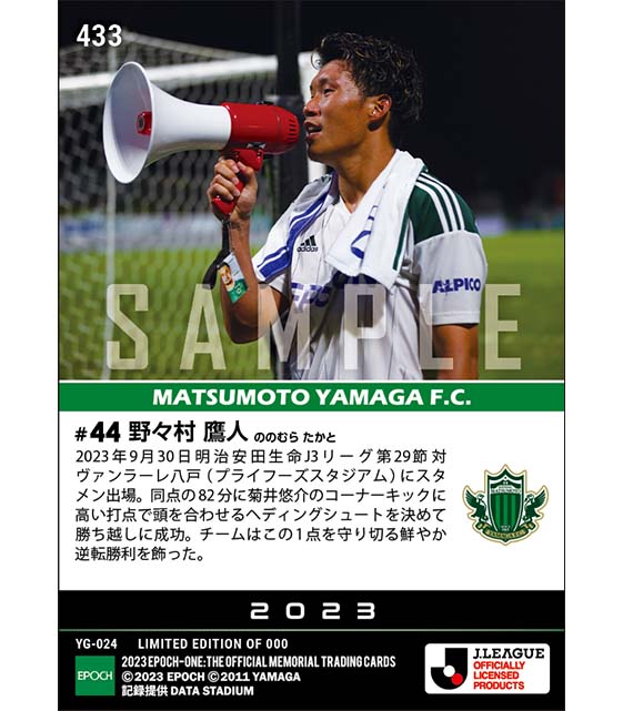 公式【野々村鷹人】高い打点で合わせた決勝ゴール(23.9.30) のカードを買うならエポックワン!税込・送料無料!