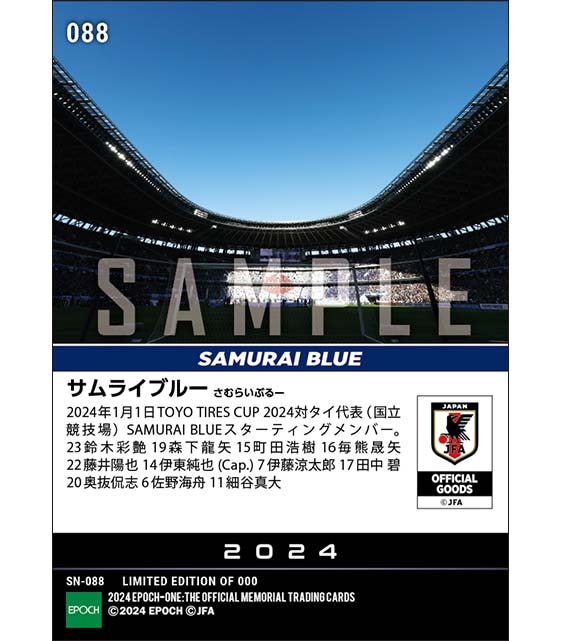 公式【SAMURAI BLUE】TOYO TIRES CUP 2024 タイ代表戦 スターティングイレブン(24.1.1) のカードを買うならエポックワン!税込・送料無料!