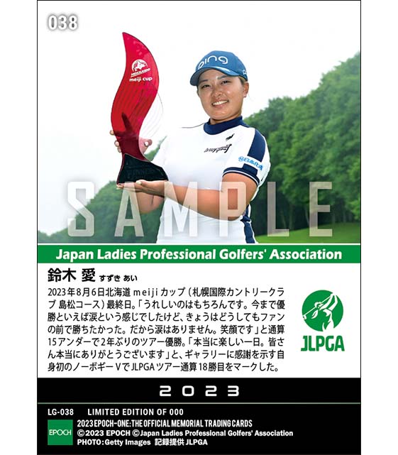 公式【鈴木 愛】北海道 meiji カップ 自身初のノーボギーVで2年ぶりの優勝(23.8.6) のカードを買うならエポックワン!税込・送料無料!