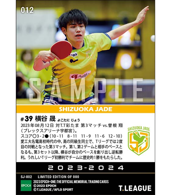 公式【横谷 晟】Tリーグ初勝利でチームの歴史的1勝に貢献(23.8.12) のカードを買うならエポックワン!税込・送料無料!