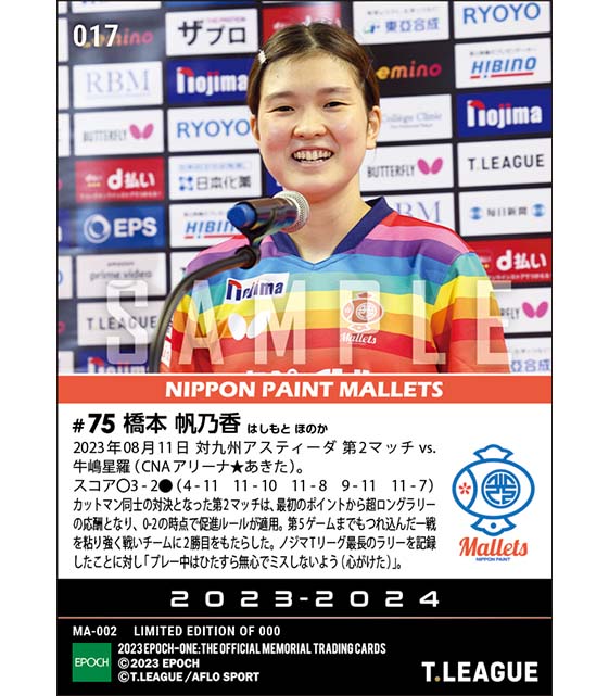 公式【橋本帆乃香】カットマン同士の対決を制覇(23.8.11) のカードを買うならエポックワン!税込・送料無料!