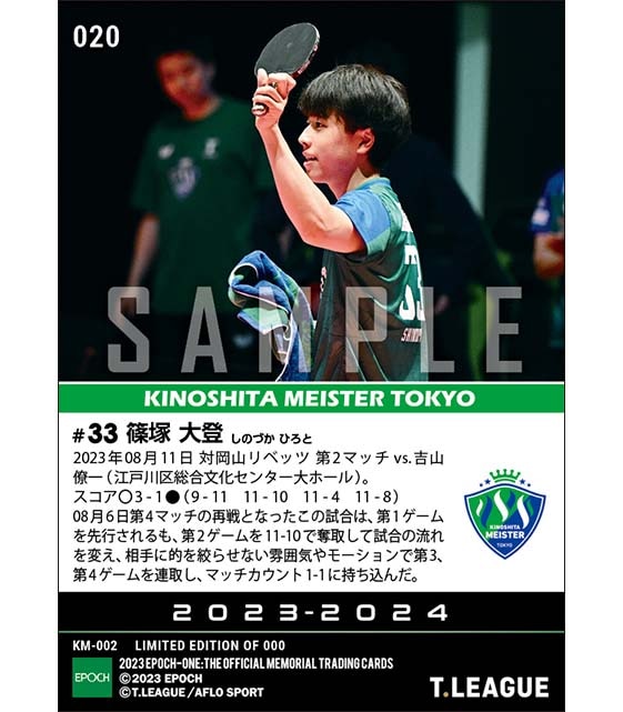 公式【篠塚大登】シングルスで先勝(23.8.11) のカードを買うならエポックワン!税込・送料無料!