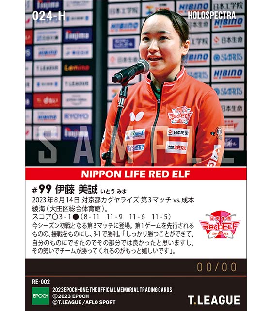 公式※ホロスペクトラ【伊藤美誠】シーズン初戦で初勝利(23.8.14) のカードを買うならエポックワン!税込・送料無料!