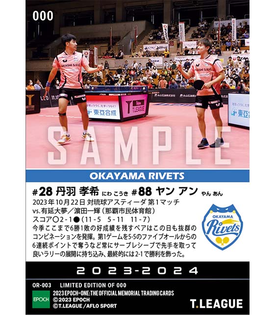 公式【丹羽孝希/ヤン アン】抜群のコンビネーションを見せて2-1で勝利(23.10.22) のカードを買うならエポックワン!税込・送料無料!