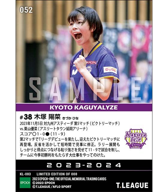 公式RC【木塚陽菜】チームに今季初勝利をもたらすTリーグ初勝利(23.11.5) のカードを買うならエポックワン!税込・送料無料!