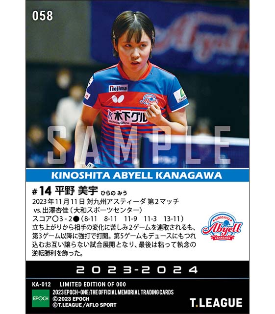 公式【平野美宇】接戦を制して執念の逆転勝利(23.11.11) のカードを買うならエポックワン!税込・送料無料!