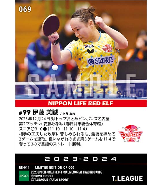 公式【伊藤美誠】貫録のストレート勝利(23.12.24) のカードを買うならエポックワン!税込・送料無料!
