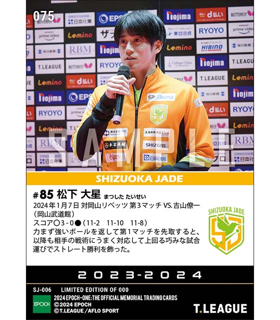 公式【松下大星】巧みな試合運びでストレート勝利(24.1.7) のカードを買うならエポックワン!税込・送料無料!
