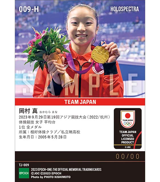 公式※ホロスペクトラ【岡村 真】女子種目別平均台で史上初の金メダル 第19回アジア競技大会(2022/杭州)金メダル(体操競技 女子 平均台)(23.9.29) のカードを買うならエポックワン!税込・送料無料!