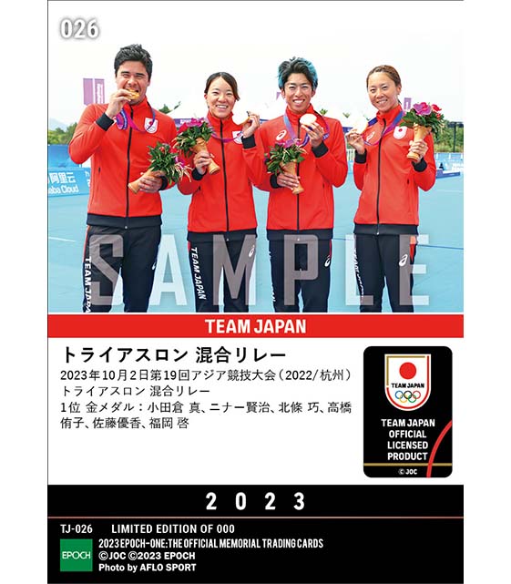 公式【トライアスロン混合リレー】男女の覇者を擁して3大会連続金メダル 第19回アジア競技大会(2022/杭州)金メダル(トライアスロン混合リレー)(23.10.2) のカードを買うならエポックワン!税込・送料無料!