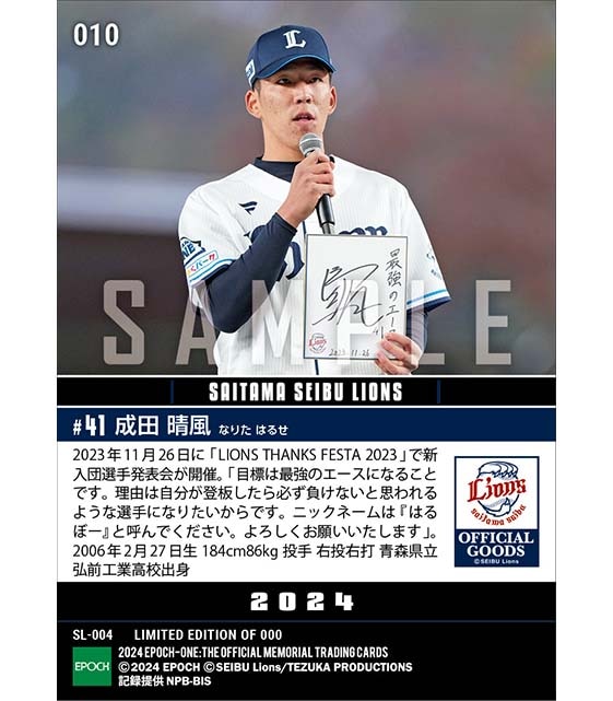 公式RC【成田晴風】新入団選手発表(ドラフト4巡目)「目標は最強のエースになること」(23.11.26) のカードを買うならエポックワン!税込・送料無料!