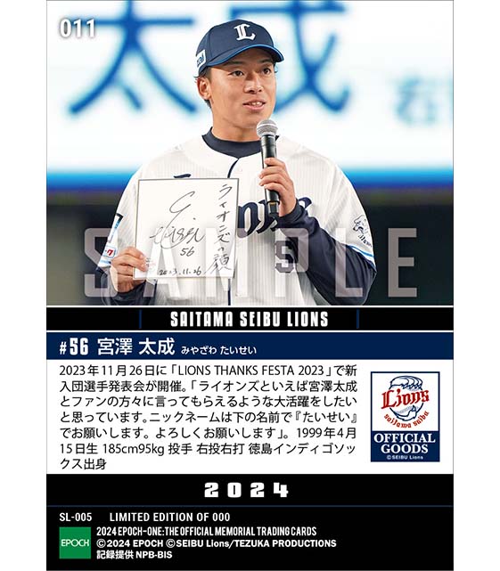 公式RC【宮澤太成】新入団選手発表(ドラフト5巡目)「ライオンズといえば宮澤太成と言ってもらえるような大活躍を」(23.11.26) のカードを買うならエポックワン!税込・送料無料!