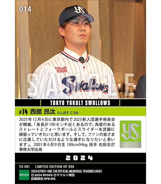 公式RC【西舘昂汰】新入団選手発表(ドラフト1巡目)「ファンの皆さまに応援していただけるような選手に」(23.12.4) のカードを買うならエポックワン!税込・送料無料!