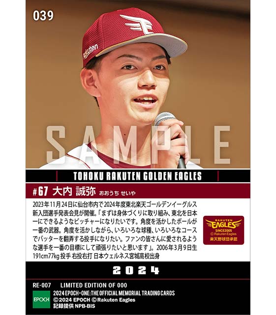 公式RC【大内誠弥】新入団選手発表(ドラフト7巡目)「東北を日本一にできるようなピッチャーに」(23.11.24) のカードを買うならエポックワン!税込・送料無料!