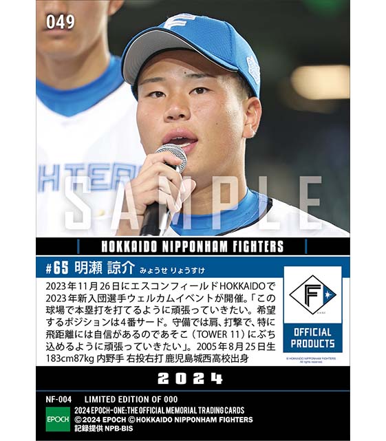 公式RC【明瀬諒介】新入団選手発表(ドラフト4巡目)「1日でも早く一軍の舞台で活躍できるように」(23.11.26) のカードを買うならエポックワン!税込・送料無料!