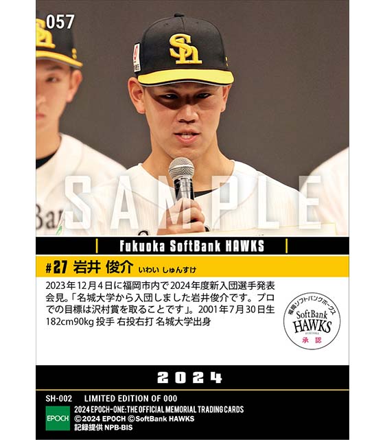 公式RC【岩井俊介】新入団選手発表(ドラフト2巡目)「プロでの目標は沢村賞を取ること」(23.12.4) のカードを買うならエポックワン!税込・送料無料!