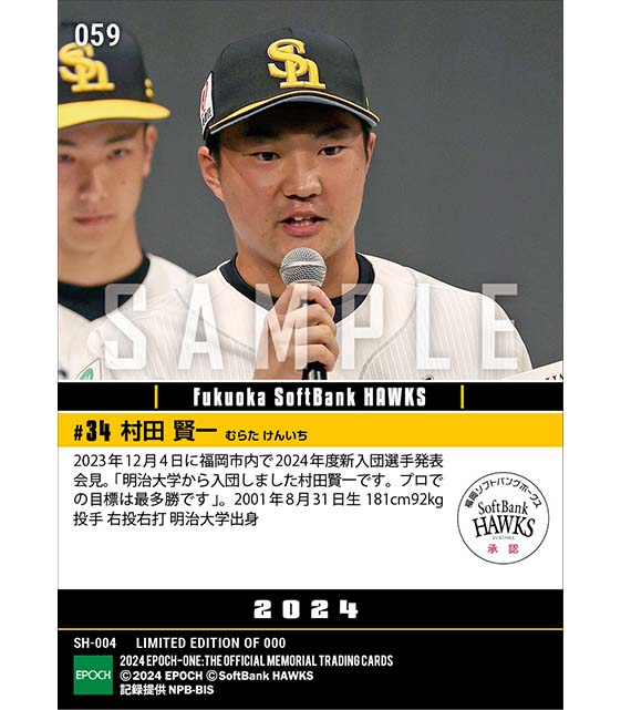 公式RC【村田賢一】新入団選手発表(ドラフト4巡目)「プロでの目標は最多勝」(23.12.4) のカードを買うならエポックワン!税込・送料無料!