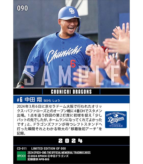 公式【中田 翔】オープン戦で“移籍後初本塁打”(23.3.6) のカードを買うならエポックワン!税込・送料無料!