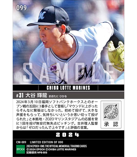 公式RC【大谷輝龍】オープン戦初登板で本拠地デビュー(24.3.10) のカードを買うならエポックワン!税込・送料無料!