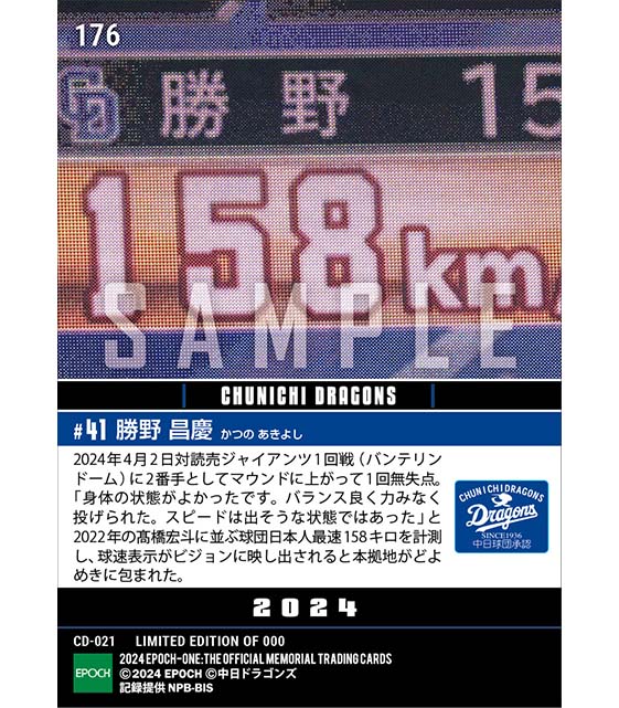 公式【勝野昌慶】球団日本人最速タイ158キロ(24.4.2) のカードを買うならエポックワン!税込・送料無料!