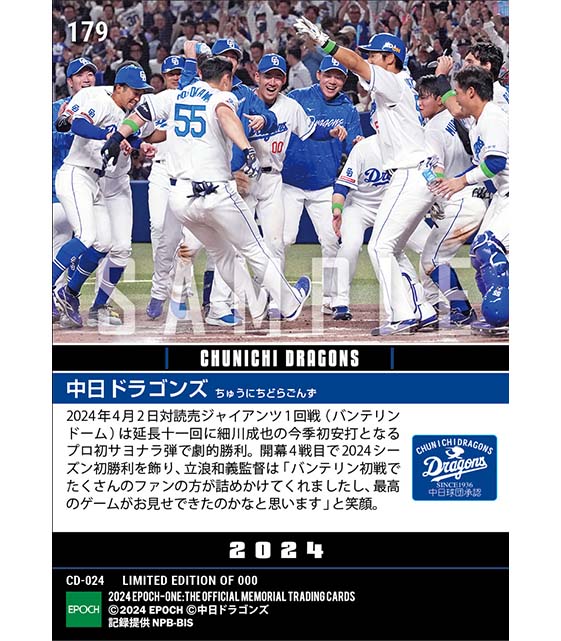 公式【中日ドラゴンズ】延長戦制し今季初勝利(24.4.2) のカードを買うならエポックワン!税込・送料無料!