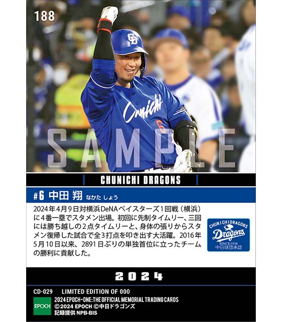 公式【中田 翔】2打席連続タイムリーでチームは2891日ぶりの単独首位(24.4.9) のカードを買うならエポックワン!税込・送料無料!