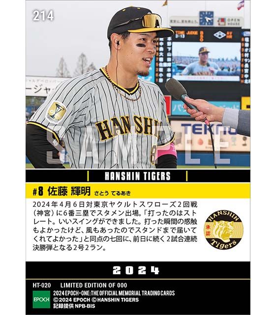公式【佐藤輝明】2試合連続決勝弾となる2号2ラン(24.4.6) のカードを買うならエポックワン!税込・送料無料!