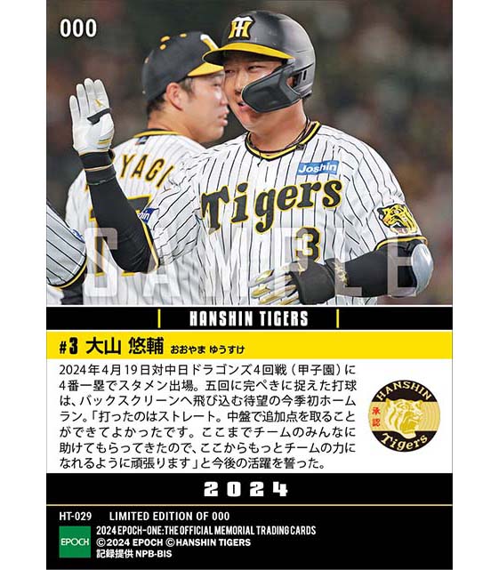 公式【大山悠輔】バックスクリーンへ飛び込む待望の今季初アーチ(24.4.19) のカードを買うならエポックワン!税込・送料無料!