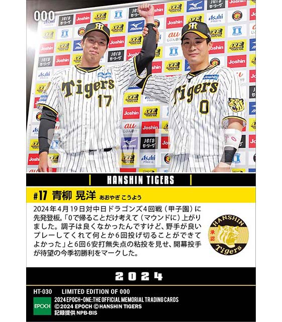 公式【青柳晃洋】開幕投手が待望の今季初勝利(24.4.19) のカードを買うならエポックワン!税込・送料無料!