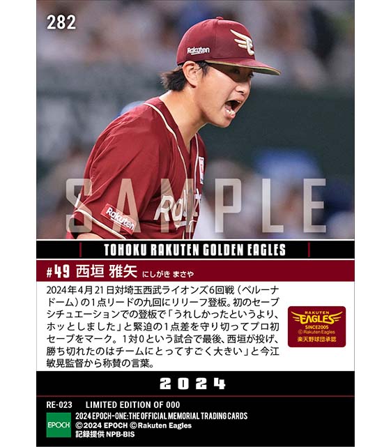 公式【西垣雅矢】プロ初セーブ(24.4.21) のカードを買うならエポックワン!税込・送料無料!